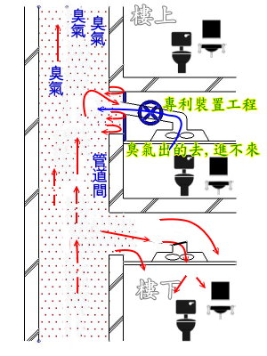 所謂的管道間,就是所有人的浴室抽風機,都會抽進管道間,然後順著管道間一直排上屋頂。