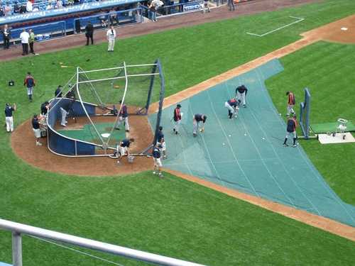 隔天一到球場 老虎已經在batting cage練球囉