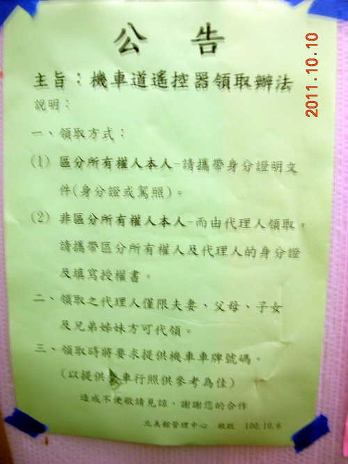 自11月1日起,為徹底做門禁控管,請各位住戶記得攜帶