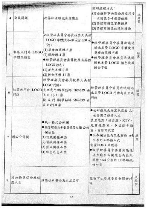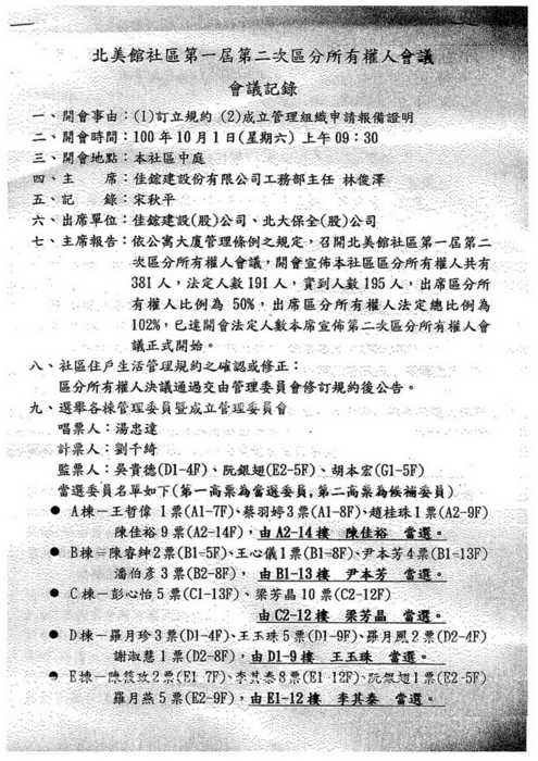北美館社區第一屆第二次區分所有權人會議記錄