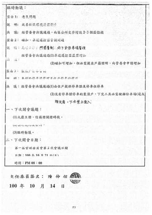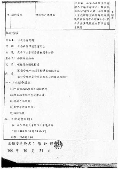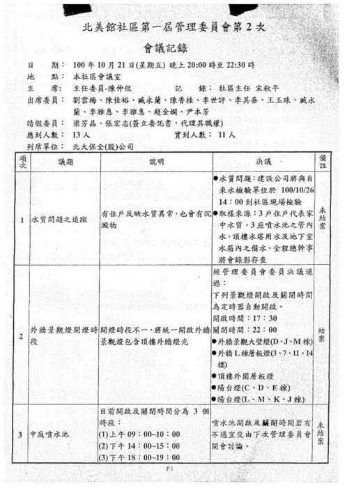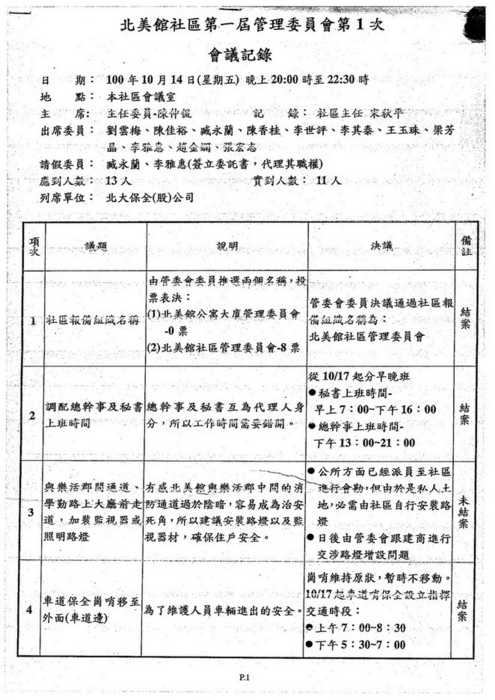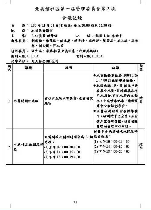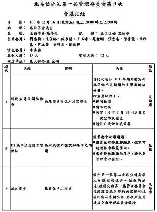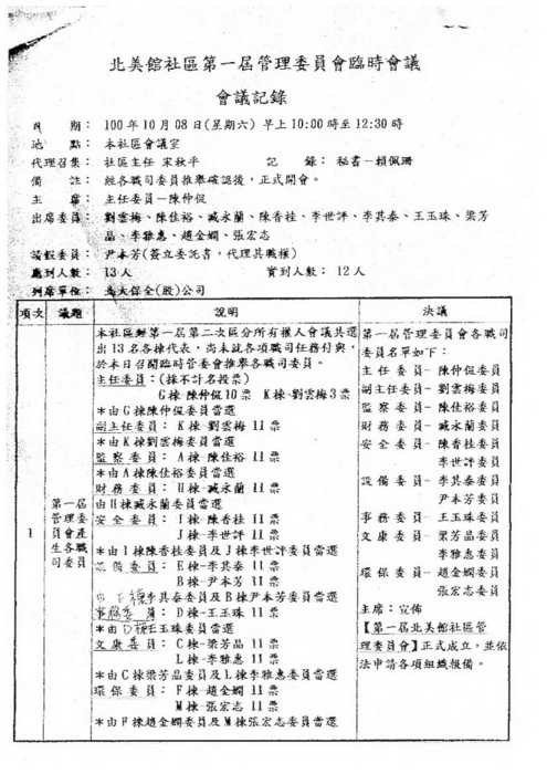 北美館社區第一屆管委會第3次會議