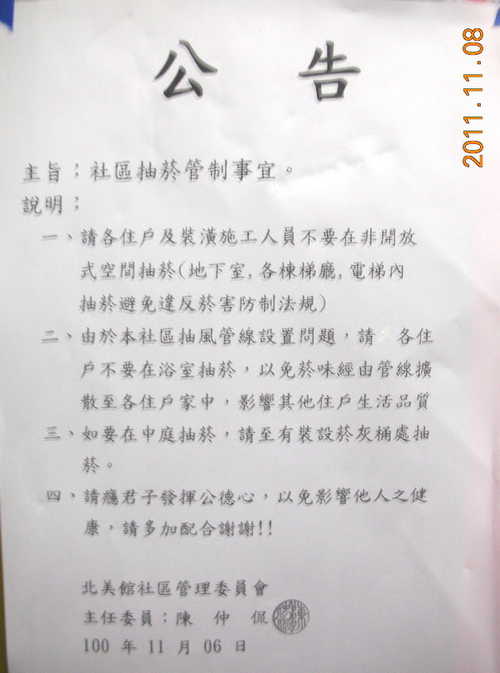 社區抽菸管制公告