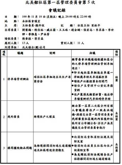 北美館社區第一屆管委會第5次會議記錄