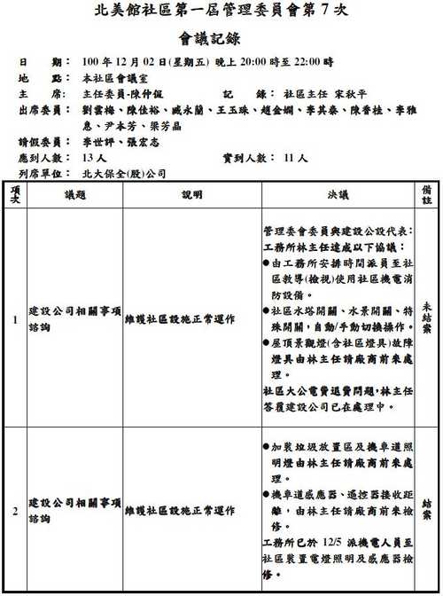 北美館社區第一屆管委會第7次會議記錄