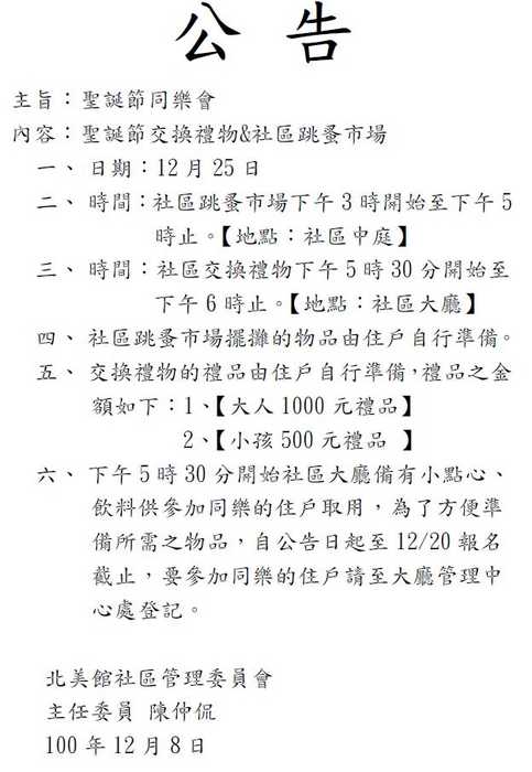 ps.這兩天忘了把公告拍下來,晚一點補上。