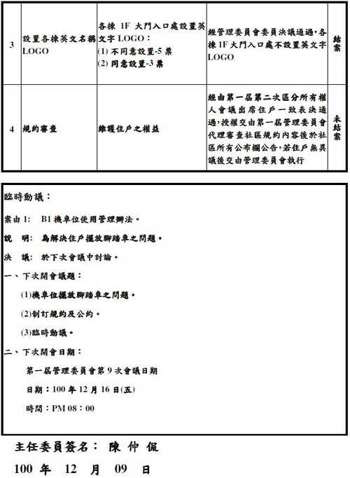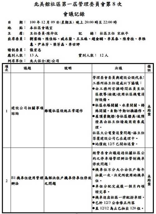 第一屆管委會第8次會議紀錄