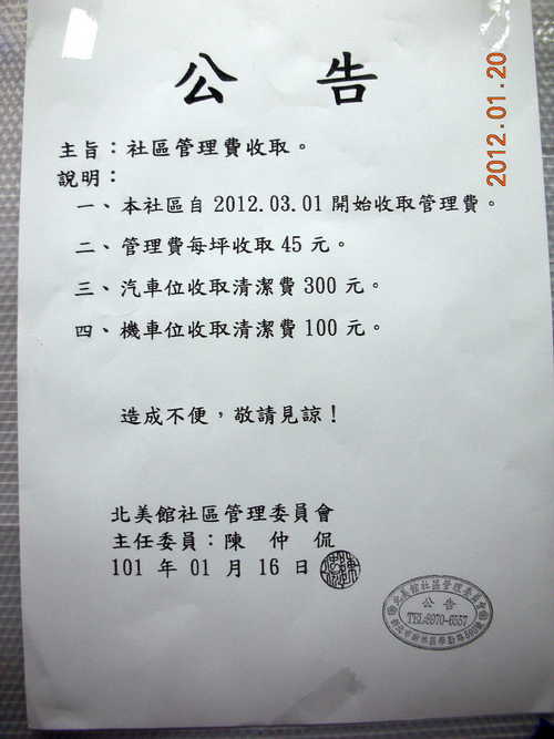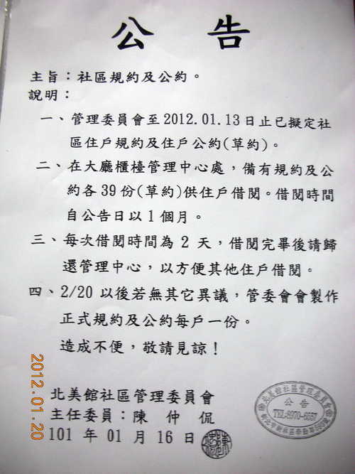北美館社區第一屆第4次管理委員會會議通知