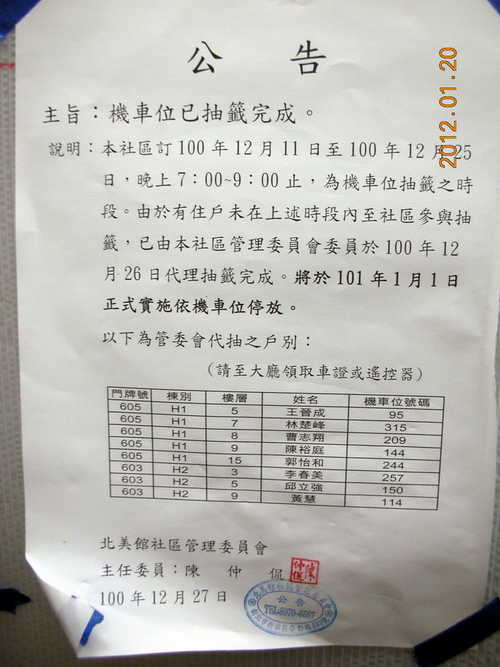 機車位已抽籤完成