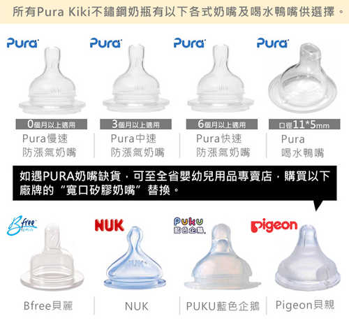 不鏽鋼奶瓶+不銹鋼奶嘴環+醫療級矽膠奶嘴+矽膠奶瓶蓋