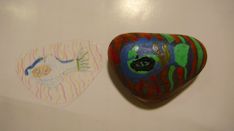 松哥獨具慧眼,懂得欣賞!{:4_153:}經 由您的解說,思考如何依石頭形狀特色去構圖,還有色彩的搭配,偶們都表現的不錯吧!尤其是小朋友的想法,表現在石頭彩繪上,超有特色!讚!{:4_131:}