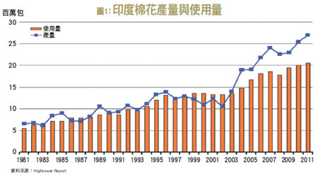 中國大陸是目前全球最大的棉花產地,根據中國棉花協會的預估,今年的產能會較去(2010)年成長12.3%,另外商業用的棉花庫存會較去年同期成長45%。同樣的,世界第2大產地印度,預期今年可以收成3550萬包的棉花,其中700萬包可供出口,將會直接衝擊美國的出口商。