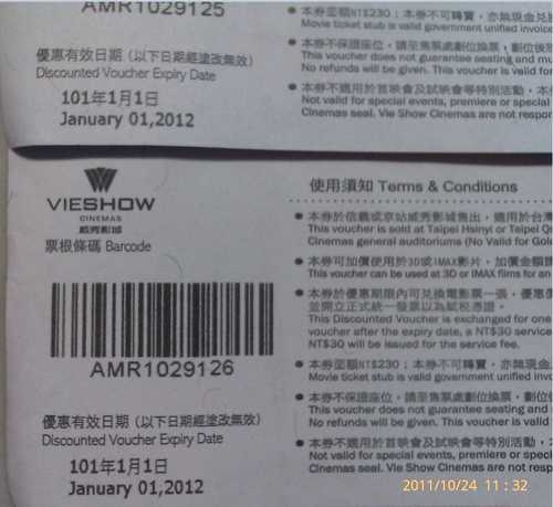 威秀影城電影票出售(全省通用) 1張200