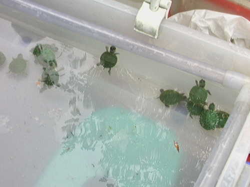 撈魚攤的烏龜、小金魚看起來都快掛了