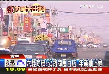 進出六輕的主要道路,上下班時間交通混亂,車輛到處亂停,進一步為您追蹤,因為六輕人潮固定,每天都有大批工人和包商進出,需要吃喝,店家搶做生意,一條馬路聚集了近百家店,形成公路商圈,估計這條雲3-3縣道,一個月營收破千萬,一年創造上億元業績。
