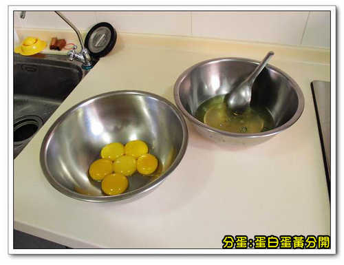 1.蛋黃加糖、鹽攪打