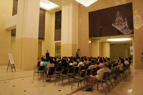 做個電梯下樓, 就有高水準的音樂沙龍與高水準的場地, 真的很{:4_209:}