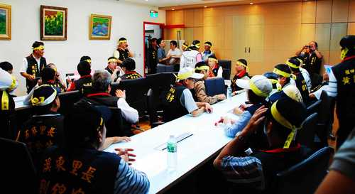 事件發生後,憤怒的里長們,直接殺進新北市市政府朱立倫市長開會之處,要衝撞會議室表達強烈憤怒。