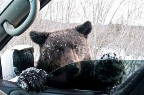 它是想進來取暖, 外邊下雪呢!