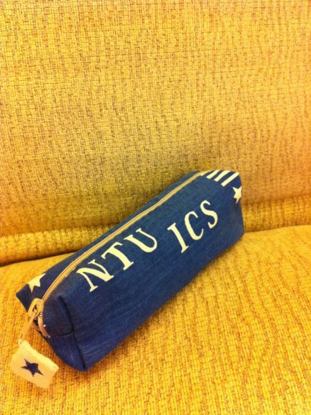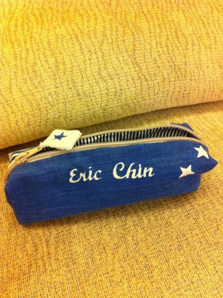 我還做了 印上兒子名字的專用筆袋 也是由白色胚布印出來的