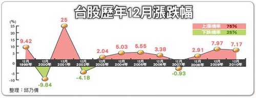 中華民國100年僅剩下1個月,今(2011)年股市表現有風也有雨,年初高點上看萬點行情,唯隨著歐債等國際經濟局勢的丕變,高點不破卻持續修正探底,就連總統大選行情似乎也失靈。