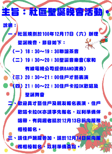 以下內容為社區聖誕晚會活動