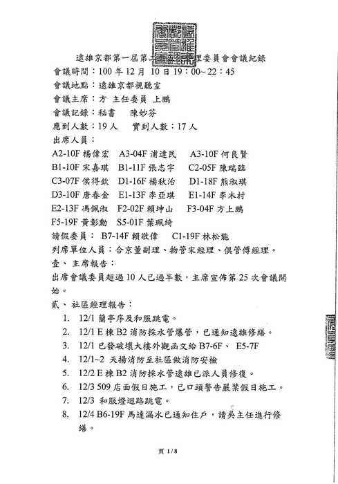貳. 社區經理報告