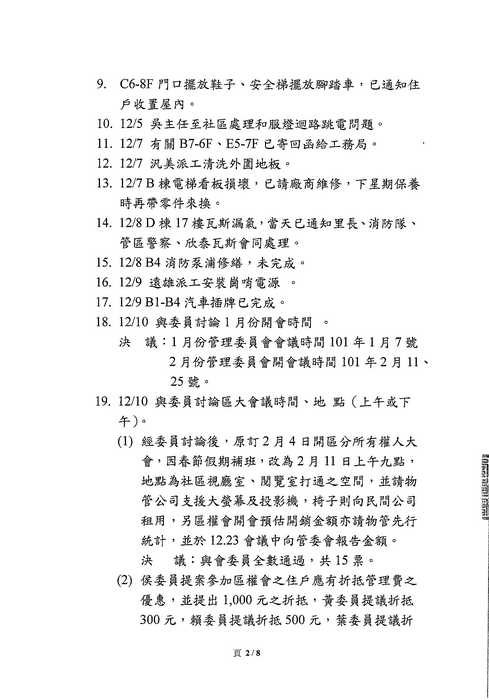 B) 1/15 (日) 14:00 要召開 臨時會 主題是因應 2/11(六)早上9:00 第二屆區分所有權人會議, 住戶可 旁聽嗎?{:4_144:} 可發言嗎?{:7_434:}