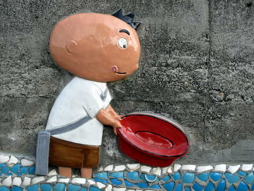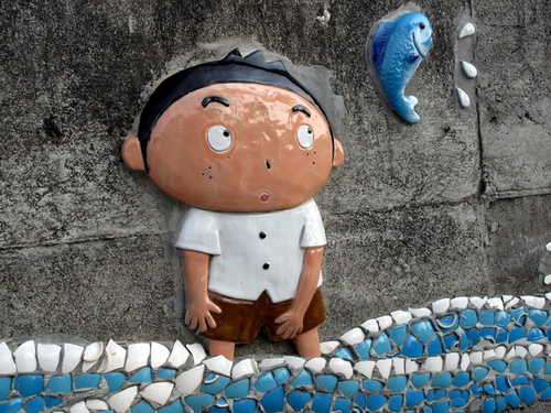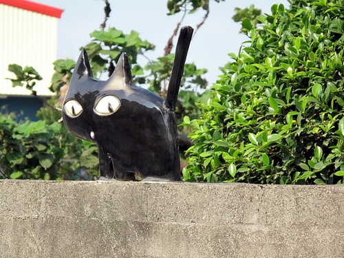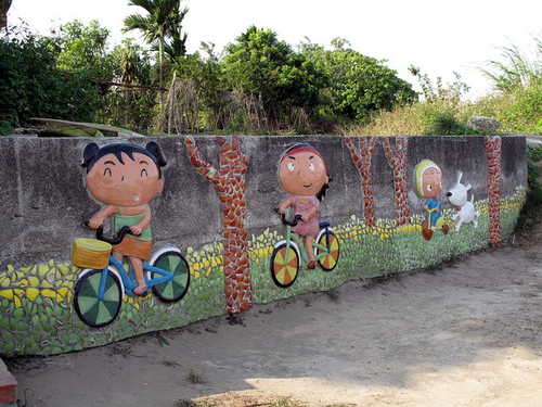 寒風中迎著冬陽,腳踏鐵騎沿著鐵道悠然穿梭於社區巷弄。清淨樸素的村舍有著與世無爭的淡然氛圍,交趾剪黏藝術在社區轉角處、圍牆上隨處可見,陶板製作的可愛人物富饒童趣,為農村景觀帶來活潑生氣,長天宮的神明日日夜夜守護著村民的平安健康。