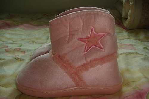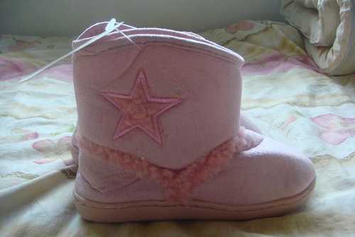 尚未使用過!粉色星款雪鞋--黑色條紋毛球靴