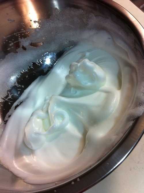 蛋白打到大泡泡,放進2/1砂糖和塔塔粉...