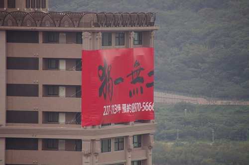 這個布條好像掛好多天了....第一次在高速公路上瞄到時, 感覺很無言....不會吧.... 建案名不寫, 寫這個....