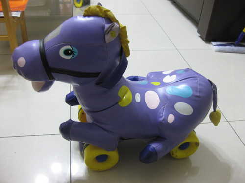 另售一隻Japlo四輪小馬,皮質的喔~~但小孩小時很愛親它...所以布質處有許多"口水痕跡"
