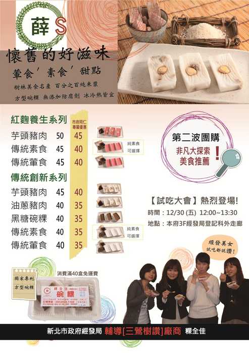 3.紅麴養生系列:芋頭豬肉*3、傳統素食*3、傳統葷食*3