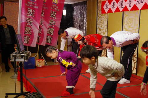 三峽北大練功場準備的精采節目, 將動氣功其中幾式功法融入高山青的歌舞中....