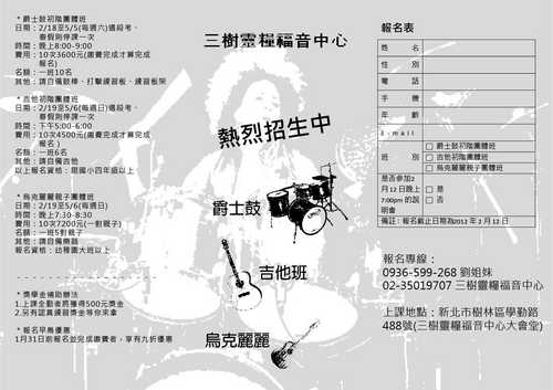 爵士鼓/吉他/烏克麗麗~熱烈招生----三樹靈糧福音中心