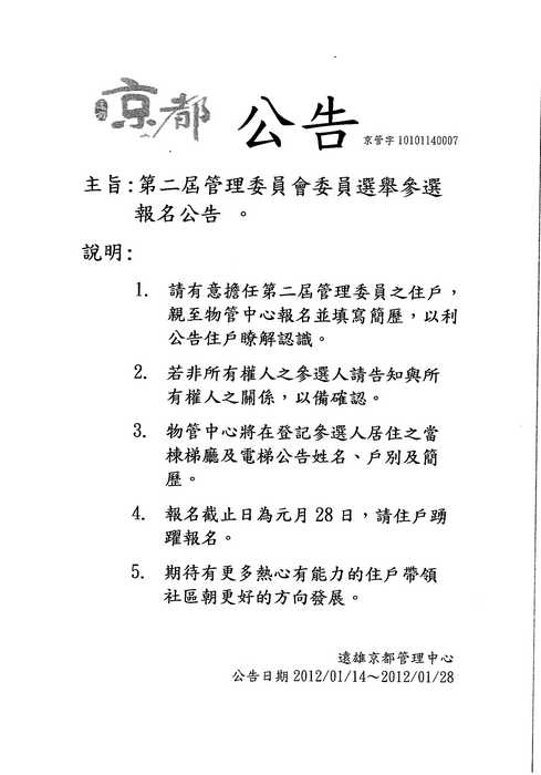 個人對該作業沒興趣了解{:7_402:} , 所以不會去[指導], 相信"管委會"會去[指導], 因是管委會規定 1/28(六)截止繳交報名表的, 所以 "應該" 也會[指導]物管後續作業吧{:7_345:}