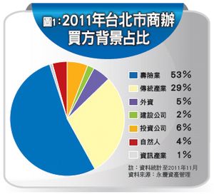 幫商辦製造買氣的買家,壽險比重高達七成,其次投資大戶持續加碼(圖一),觀察其投資偏好有三要件:「市中心辦公商圈的熱門地段、整棟或大坪數物件、穩定租金收益達二%以上」,愈符合條件的商辦產品,愈能吸引買家競價搶案,標價創新高機會就愈大。