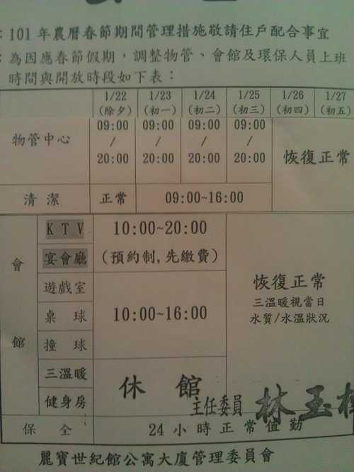 春節會館營運時間