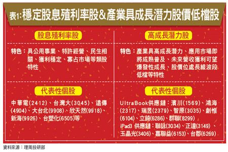 理周投研部特別為投資人提出選股三大方向,一是現金殖利率穩定;二是股價低產業前景看好者,例如Ultrabook與平板電腦供應鏈;三是紅包行情概念股等共六檔強股,預祝投資人龍年行大運。