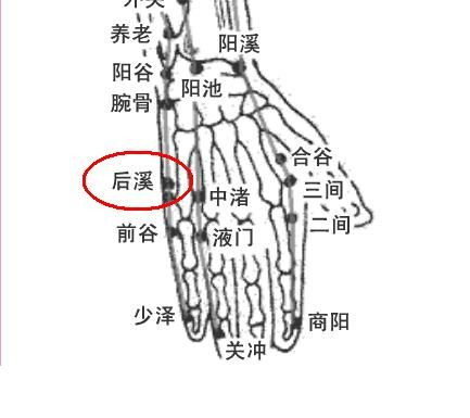後溪穴的功效 後溪穴是小腸經上的一個穴,把手握拳,掌指關節橫紋的盡頭就是該穴。這個穴是奇經八脈的交會穴,通督脈,能瀉心火,壯陽氣,調頸椎,利眼目,正脊椎。臨床上,頸椎出了問題,腰椎出了問題,眼睛出了問題,都要用到這個穴,效果非常明顯。它可以調整長期伏案或在電腦前學習和工作對身體帶來的一切不良影響,只要堅持,百用百靈。 【台灣新生報/記者萬博超/台北報導】