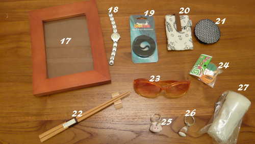21包頭網子(2個),22木筷+筷架,23太陽眼鏡,24哨子,25小河馬鑰匙圈