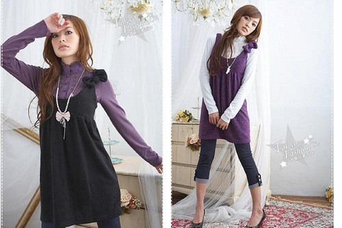 全新有三色羊絨蝴蝶結背心小洋裝