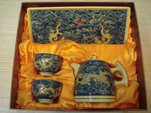 由於沒有用到,便宜出售全新立體浮雕金龍茶具組