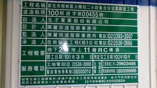 忠明營造工地上的告示寫著:地下二層地上11層, 聽說是住辦大樓, 不知道為何可以蓋這麼高的大樓, 地坪看起來不大啊!