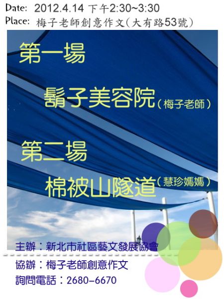 這個說故事活動爭取到新北市社區藝文發展協會的支持^_^
