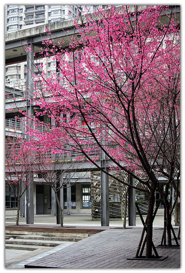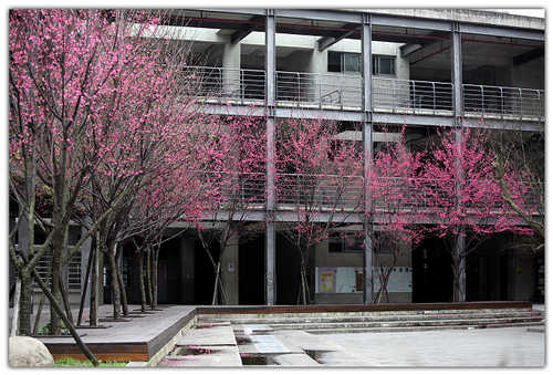 我喜歡桃子腳國小裡面的櫻花,冷冷的清水模建築配上艷麗的桃紅色~~很美~~
