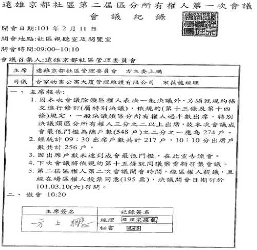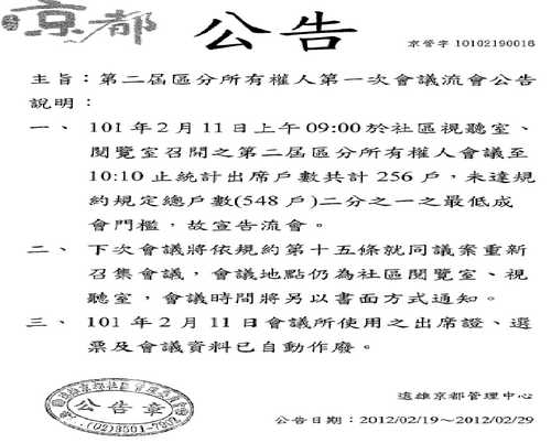 祥龍 發表於 2012-2-20 13:35 回復 WendyLKK 的帖子 會議日期及時間可一併公告並通知住戶!