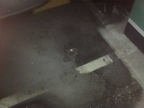 而今天會有首次看到這樣的噴出,我想唯一有可能的是, VIP 區的泳池在進行排水,而排水量過大,我們的水管無法承受那麼大量的排水,而導至水由 B3 的地面排水孔逆流噴出了!