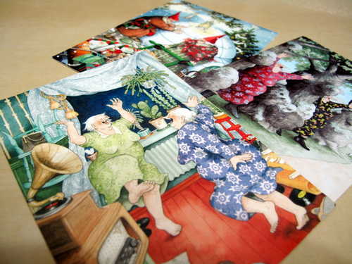 芬蘭著名插畫家Inge Löök的雙胞胎Old Lady插畫系列明信片(收藏)