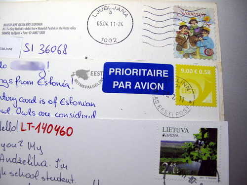 少見國家的明信片及郵票(由上而下:斯洛伐尼亞,愛沙尼亞,立陶宛)